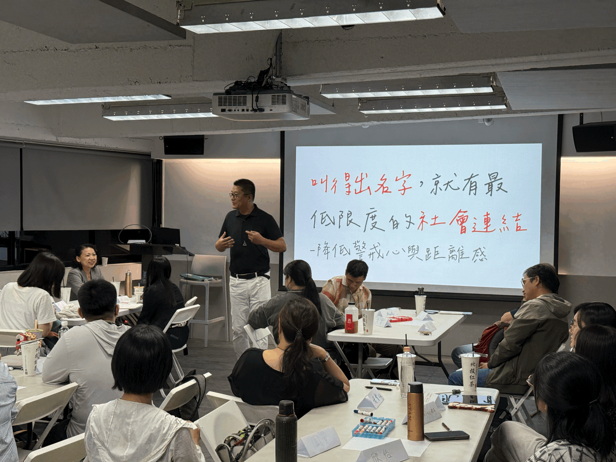 看似輕鬆的互動,其實在示範如何降低學員的內在焦慮,讓人更能自在交流。