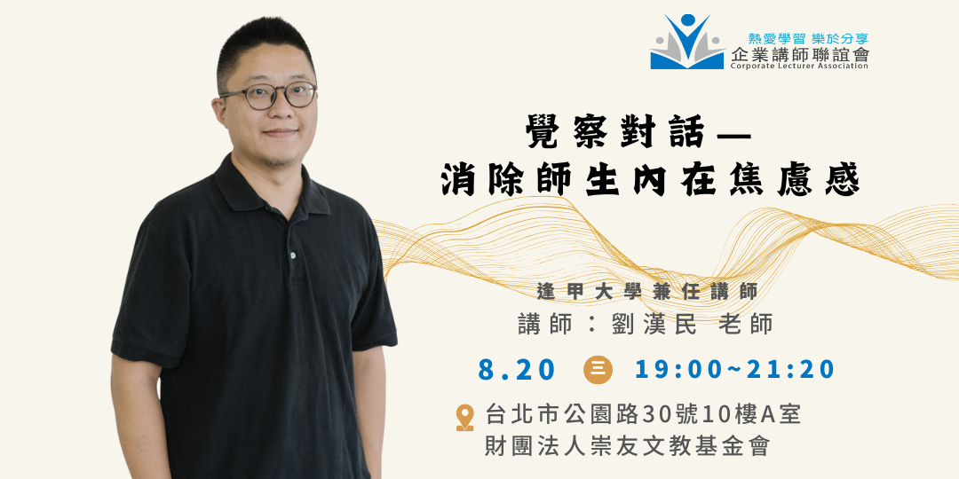 八月活動:「覺察對話」消除師生內在焦慮感-劉漢民老師